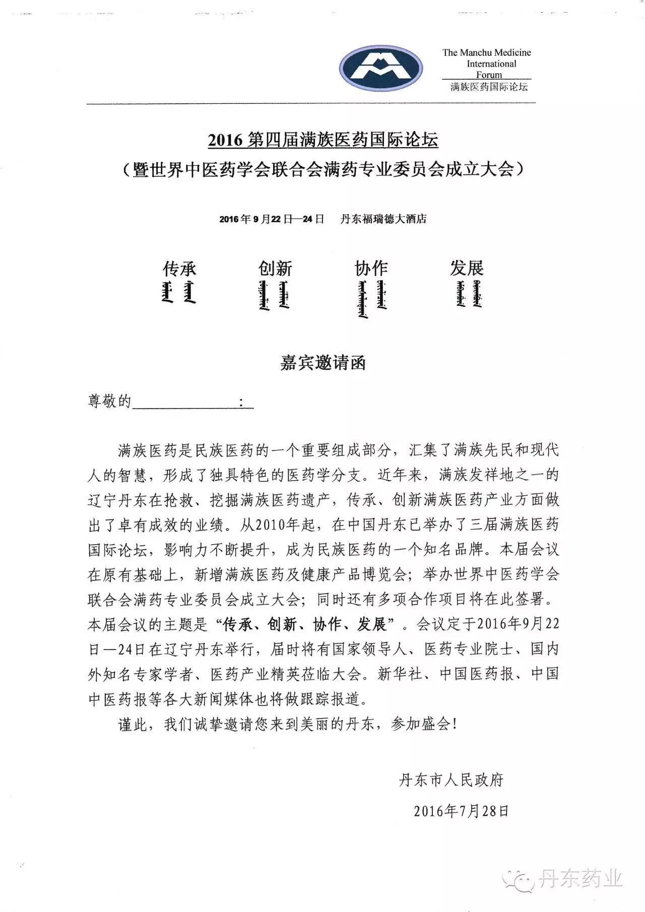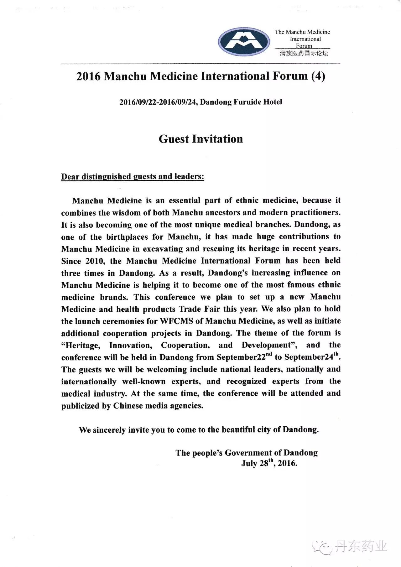 2016第四届满族医药国际论坛嘉宾邀请函及日程安排